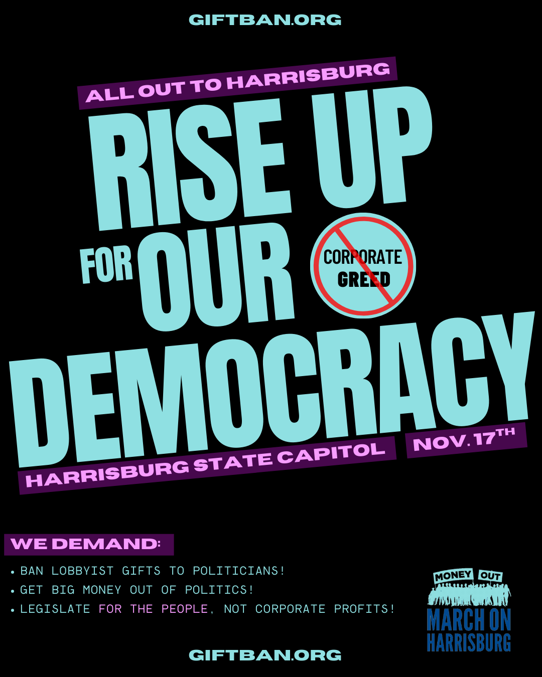 We’re drawing the line. We’re gathering in Harrisburg to demand PA legislators get money out of politics and stand up to corporate greed. Will you join us?