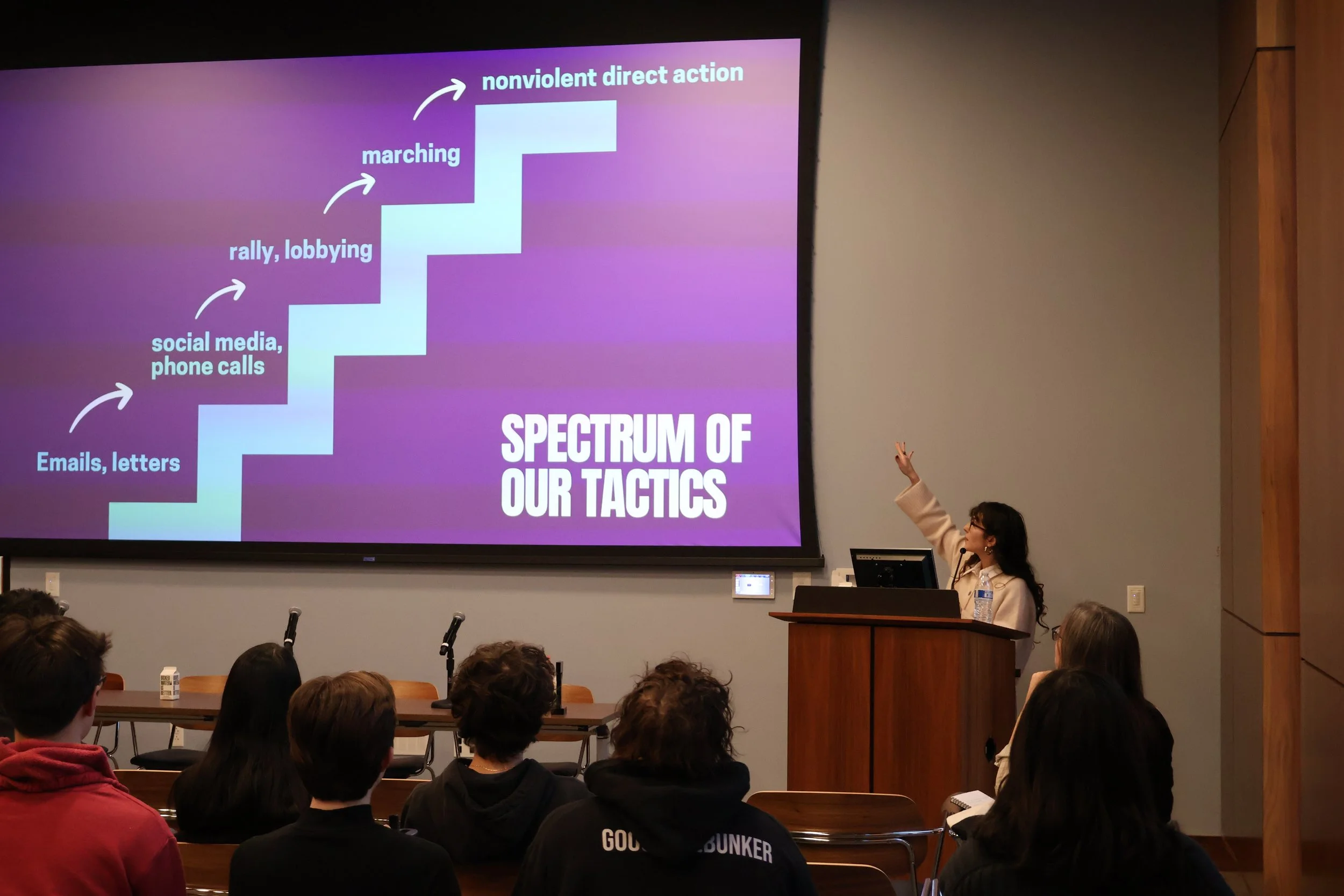 Part of a group that’s interested in learning about democracy, money in politics, and building a world where everybody can thrive? Invite us to speak!